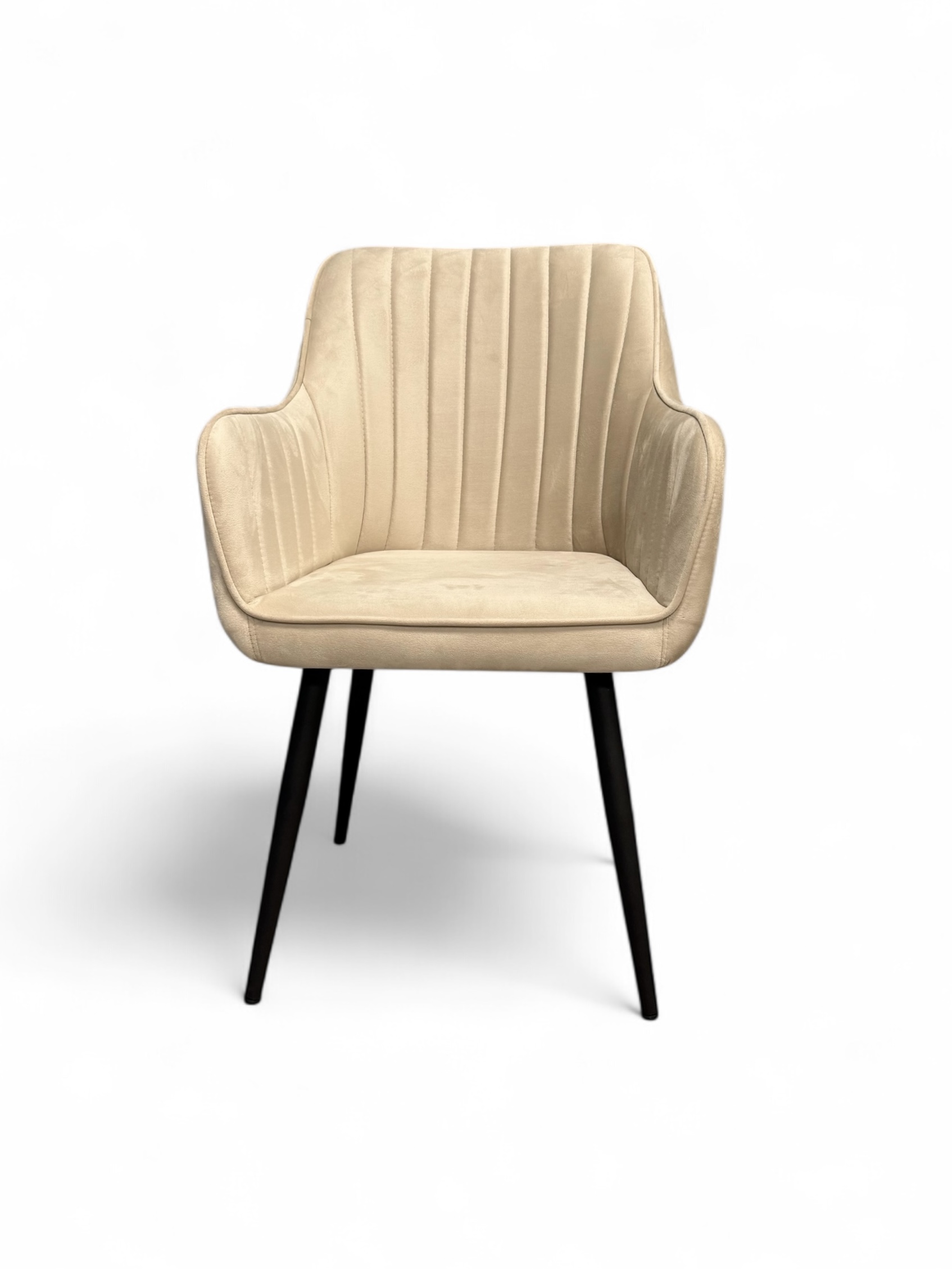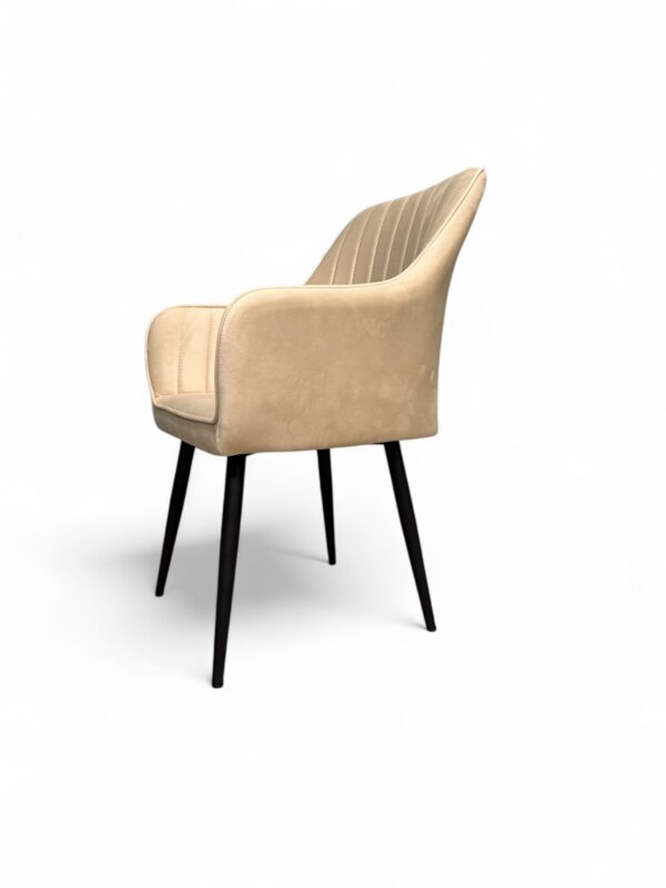 Άνετη πολυθρόνα-καρέκλα για το σαλόνι σας, με βελούδο ύφασμα. Διαθέσιμη σε γκρι και εκρού.